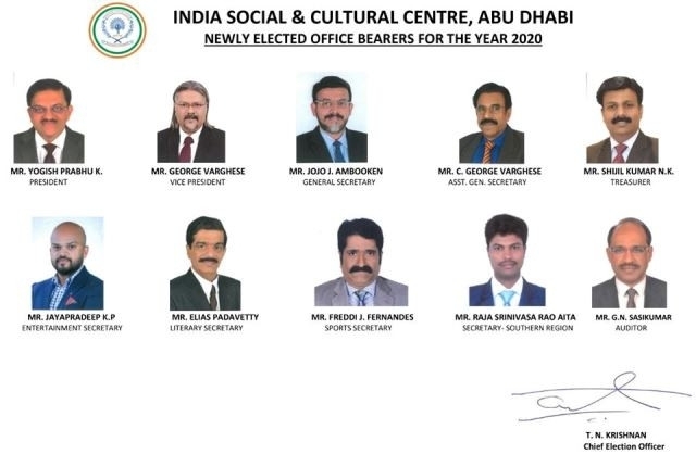 Yogish Prabhu Karkala elected as President of India Social & Cultural Centre, Abu Dhabi.