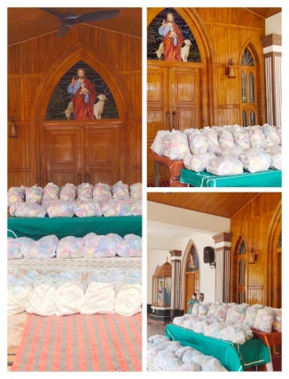 Barkur: Essential food items were distributed among 150 financially poor families around Barkur By St. Peter’s Church, Barkur in association with the Catholic Sabha, Barkur. Financially poor families from all communities got the benefit which was distributed to their door steps through the respective ward heads of the Parish.