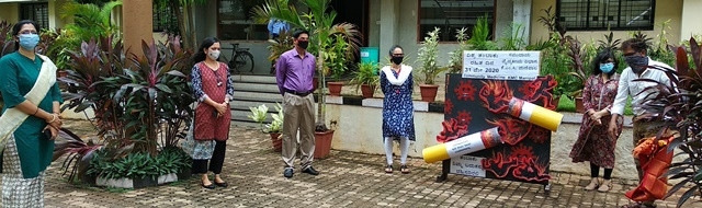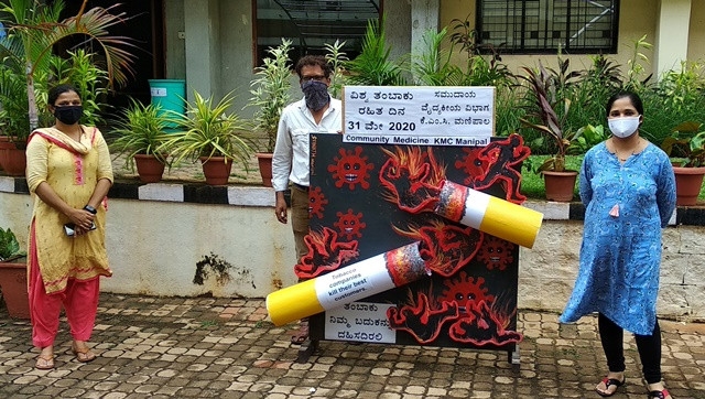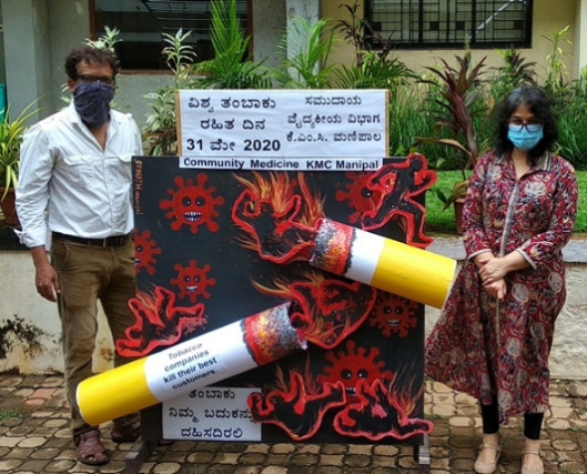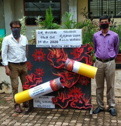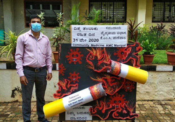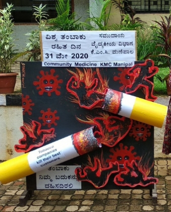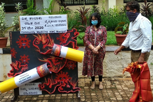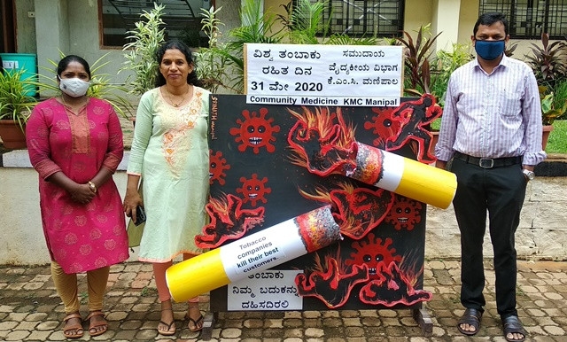 ವಿಶ್ವ ತಂಬಾಕು ರಹಿತ ದಿನದ ಅಂಗವಾಗಿ ಸಮುದಾಯ ವೈದ್ಯಕೀಯ ವಿಭಾಗ ಕೆ ಎಮ್ ಸಿ ಮಣಿಪಾಲ ಇವರ ಆಶ್ರಯದಲ್ಲಿ ಕಲಾವಿದ ಶ್ರೀನಾಥ್ ಮಣಿಪಾಲ್ ಇವರು ಜನರಲ್ಲಿ ತಂಬಾಕಿನ ಬಗ್ಗೆ ಜಾಗೃತಿ ಮೂಡಿಸುವ ವಿಶಿಷ್ಟ ಕಲಾಕೃತಿಯನ್ನು ರಚಿಸಿ ಪ್ರದರ್ಶನಕಿಟ್ಟಿದ್ದಾರೆ. ಸಮುದಾಯ ವೈದ್ಯಕೀಯ ವಿಭಾಗದ ಮುಖ್ಯಸ್ಥೆ ಡಾ.ಸುಮ ನಾಯರ್ ಈ ಕಲಾಕೃತಿಯನ್ನು ಕೆ ಎಮ್ ಸಿ ಆವರಣದಲ್ಲಿ ಸಾಮಾಜಿಕ ಅಂತರದೊಂದಿಗೆ ಅನಾವರಣಗೊಳಿಸಿದರು. ಡಾ.ವಿಣಾ ಕಾಮತ್, ಡಾ ಮುರಲಿಧರ್ ಕುಲಕರ್ಣಿ, ಡಾ ರಂಜಿತಾ ಶೆಟ್ಟಿ , ಡಾ ಚೈತ್ರಾ ರಾವ್, ಡಾ.ಸ್ನೆಹ ಡಿ. ಮಲ್ಯ, ಡಾ.ಈಶ್ವರಿ ಮುಂತಾದವರು ಇದ್ದರು.