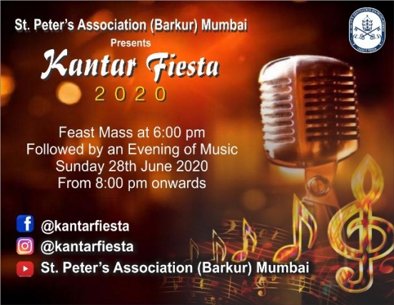 St Peter’s Association (Barkur) Mumbai is delighted to announce their online Konkani Kantar Fiesta 2020 on Sunday, 28th June 2020 and Sunday, 5th July 2020 at 8pm onwards on the occasion of their Patron St.Peter’s Feast in Mumbai.