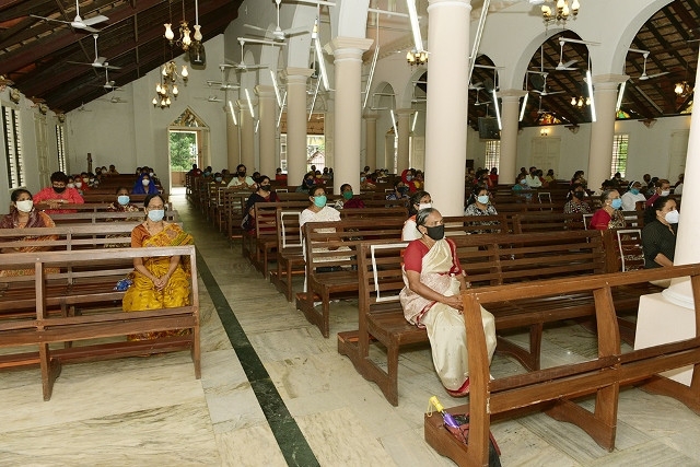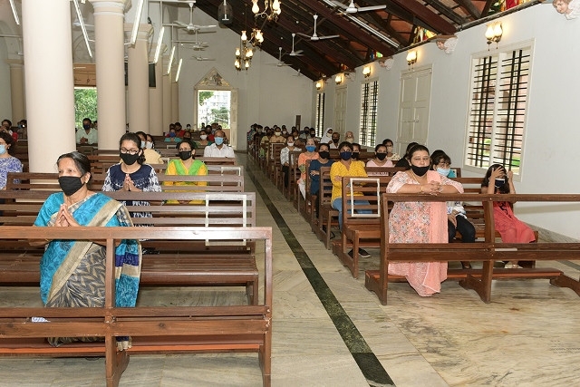 Parishioners with enthusiasm and emotions participated in the program keeping the Safety regulations in mind.