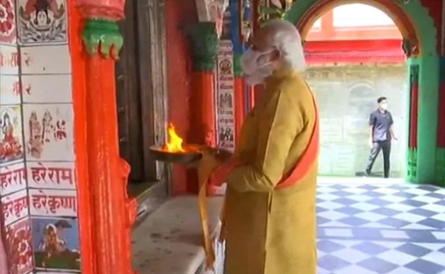 PM Modi, wearing a mask, first offered prayers at the Hanumangarhi temple - a shrine to Lord Hanuman. He went to Ramjanmabhoomi or the birthplace of Lord Ram to pray at the shrine to "Ram Lalla", the infant Lord Ram, before proceeding to the site of the main "Bhoomi Pujan" ceremony.