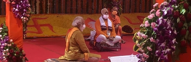 PM Modi, who in 1990 was one of the organizers of the nationwide campaign for a temple at the site where the 16th century Babri mosque once stood, sat down for rituals before laying a silver brick to symbolize the construction of the temple.