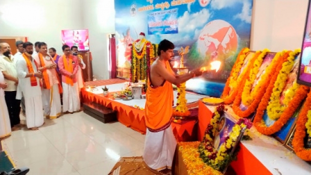 ಮಂಗಳೂರು, ಆಗಸ್ಟ್.05: ಅಯೋಧ್ಯೆಯಲ್ಲಿ ಇಂದು ಶ್ರೀರಾಮ ಮಂದಿರ ಭೂಮಿ ಪೂಜೆ ಹಿನ್ನೆಲೆಯಲ್ಲಿ ವಿಶ್ವಹಿಂದು ಪರಿಷತ್, ಬಜರಂಗದಳ, ಮಾತೃಶಕ್ತಿ, ದುರ್ಗಾವಾಹಿನಿ ವತಿಯಿಂದ ಕರಸೇವಕರಿಗೆ ಗೌರವಾರ್ಪಣೆ ಕಾರ್ಯಕ್ರಮ ಬುಧವಾರ ಬೆಳಗ್ಗೆ ಮಂಗಳೂರಿನ ಕದ್ರಿ ಸಮೀಪವಿರುವ ವಿಶ್ವಹಿಂದು ಪರಿಷತ್ ನ ಜಿಲ್ಲಾ ಕಚೇರಿಯ ಸಭಾಂಗಣದಲ್ಲಿ ನಡೆಯಿತು.