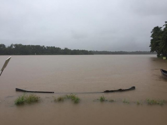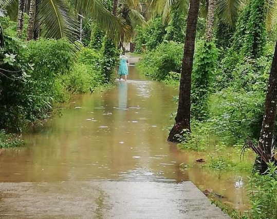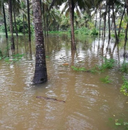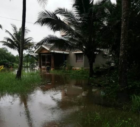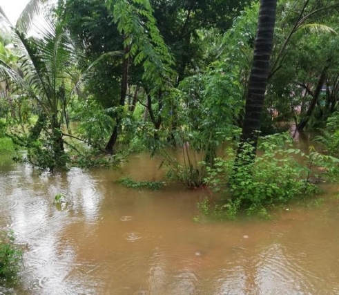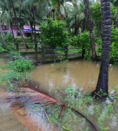 River Swarna has been flowing at danger level. Water has entered the agricultural and coconut farms in many places in the district. Water level is increasing due to the inflow from the Ghats section as heavy rain has been reported in this ares for the last several days.