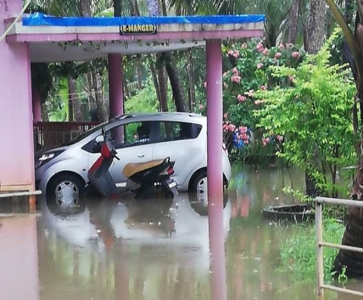 Udupi, August 8, 2020: Heavy rain and strong wind continue to batter areas in Udupi and some places of Dakshina Kannada. Normal life of the people has been thrown out of gear by the floods and overflowing rivers.