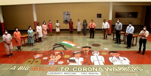 ಈ ಬಾರಿಯ ಸ್ವಾತಂತ್ರ್ಯ ದಿನದ ಅಂಗವಾಗಿ ಕಲಾವಿದ ಶ್ರೀನಾಥ್ ಮಣಿಪಾಲ್ ಸಮುದಾಯ ವೈದ್ಯಕೀಯ ವಿಭಾಗ ಕೆಎಂಸಿ ಮಣಿಪಾಲ ಇವರ ಸಹಯೋಗದೊಂದಿಗೆ ಕೆ ಎಂ ಸಿ ಯ (ಇಂಟ್ರಾರಕ್ಟ್) ಆವರಣದಲ್ಲಿ ಬೃಹತ್ ಜಲವರ್ಣ ಕಲಾಕೃತಿಯನ್ನು ರಚಿಸಿ ಕೊರೊನಾ ವಿರುದ್ಧ ಹೋರಾಡುತ್ತಿರುವ ಸೈನಿಕರಿಗೆ ಸಮರ್ಪಿಸಿದ್ದಾರೆ. ಕೆ ಎಂ ಸಿ ಯ ಡೀನ್ ಡಾ.ಶರತ್ ರಾವ್ ಕಲಾಕೃತಿಯನ್ನು ಅನಾವರಣಗೊಳಿಸಿದರು.ಸಮುದಾಯ ವೈದ್ಯಕೀಯ ವಿಭಾಗದ ಡಾ.ಸುಮ ನಾಯರ್, ಡಾ. ವೀಣಾ ಕಾಮತ್, ಡಾ.ಈಶ್ವರಿ ಆಚಾರ್ ಮತ್ತಿತರರು ಉಪಸ್ಥಿತರಿದ್ದರು.