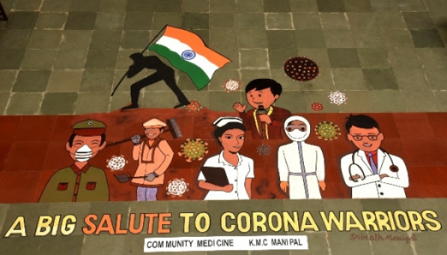 Manipal, August 14, 2020: With support of community medicine KMC manipal , Artist Srinath manipal made huge painting (800 sq feet) in campus of KMC manipal.
