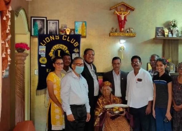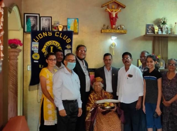 Kallianpura, Santhekatte, Sep 7, 2020: On the occasion of Teachers Day Celebrations Lions Club Kallianpura Felicitates Rtd. Teacher of LVP School Mrs. Christine Lasrado aged 93 years at her residence in Bailkere, Malpe.