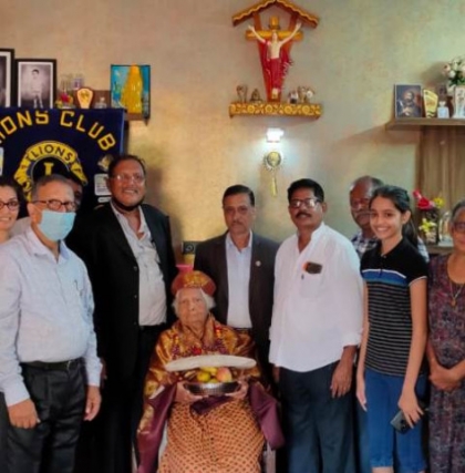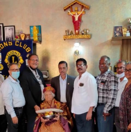 Mrs. Lasrado did her teachers training at the Girls Training in Adi Udupi. After completing her teachers training she joined LVP School, Puttur, Udupi in the year of India’s Independence (1947) and served the school for about 37 years and got retired at the age of 55 in 1984. Now 36 years after her retirement Lions club, Kallianpur visited her resident and felicitated.