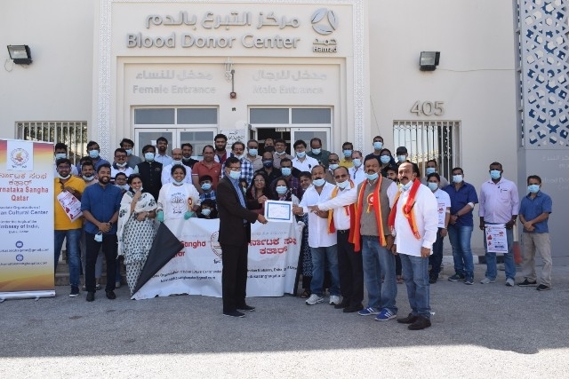 The formal session concluded by thanking all blood donors, the staff of Hamad Blood Donation centre, Mr. Subramanya Hebbagelu for coordinating the event on behalf of KSQ and all the association leaders present.Doha : Karnataka Sangha Qatar (KSQ) organized the annual blood donation camp at Hamad blood donation centre within HMC premises on Friday, 9th of October 2020 from 8:00AM to 12:00 PM. Approximately 50 packets of blood were collected from individual eligible and healthy donors, both Male and Female. Amidst prevailing condition of COVID-19 precautionary measures were followed including social distancing and all the members present were wearing masks.