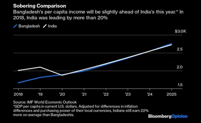 Ever since it began opening up the economy in the 1990s, India’s dream has been to emulate China’s rapid expansion. After three decades of persevering with that campaign, slipping behind Bangladesh hurts its global image. The West wants a meaningful counterweight to China, but that partnership will be predicated on India not getting stuck in a lower-middle-income trap.