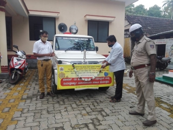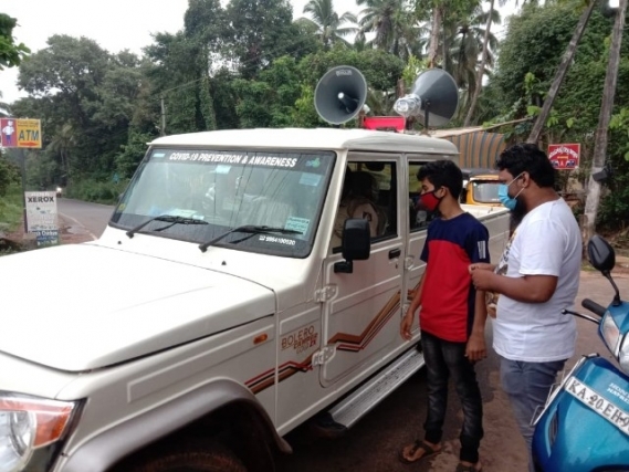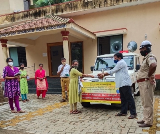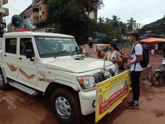 ಕಲ್ಯಾಣಪುರ : ಜಿಲ್ಲಾ ಕಾನೂನು ಸೇವೆಗಳ ಪ್ರಾಧಿಕಾರ, ಉಡುಪಿ ಇವರ ನೇತ್ರತ್ವದಲ್ಲಿ ನ್ಯಾಯಾಲಯ ಆವರಣದಲ್ಲಿ ಉದ್ಘಾಟನೆಗೊಂಡು ಚಾಲನೆಗೊಂಡ ಕೋವಿಡ್-19 ಕೊರೋನ ತಡೆಗಟ್ಟುವಿಕೆ ಮತ್ತು ಜಾಗೃತಿ ಮಾಹಿತಿ ನೀಡುವ ಪ್ರಚಾರ ವಾಹನಕ್ಕೆ ಕಲ್ಯಾಣಪುರ ಗ್ರಾಮ ಪಂಚಾಯತ್ ಪರವಾಗಿ ಸ್ವಾಗತಿಸಲಾಯಿತು.