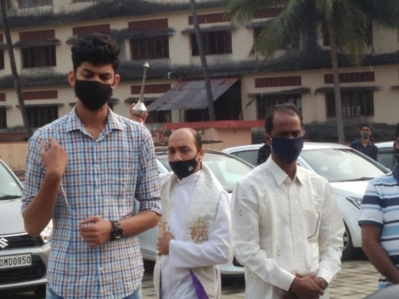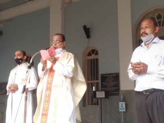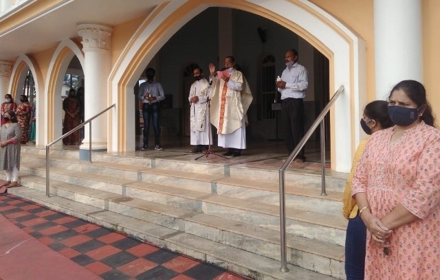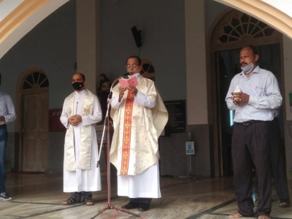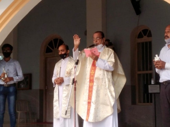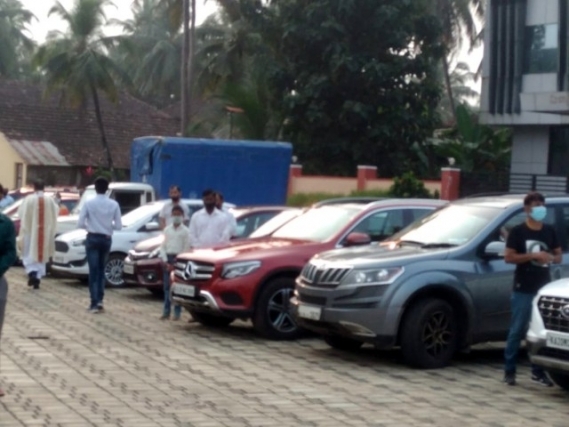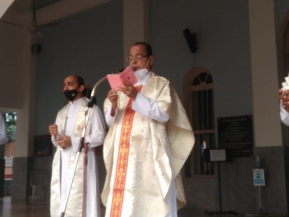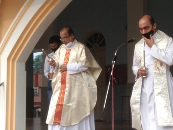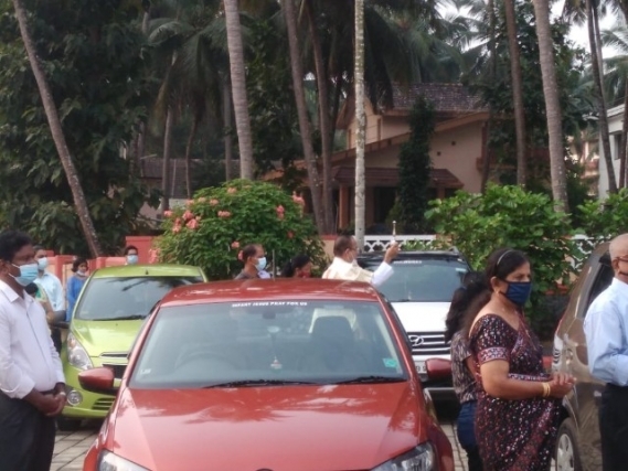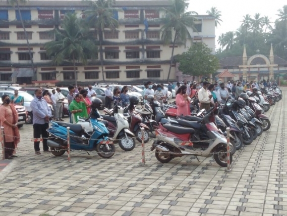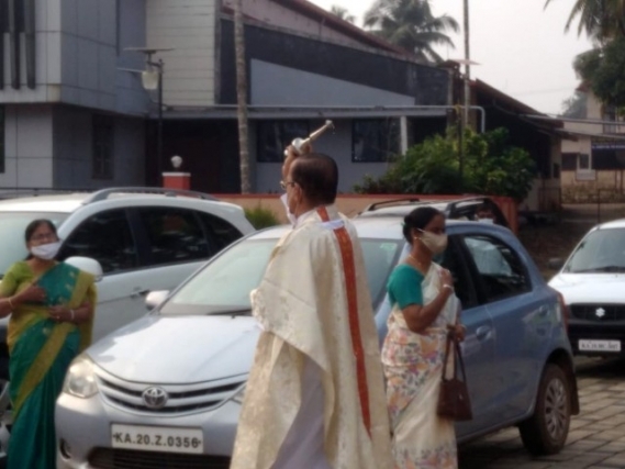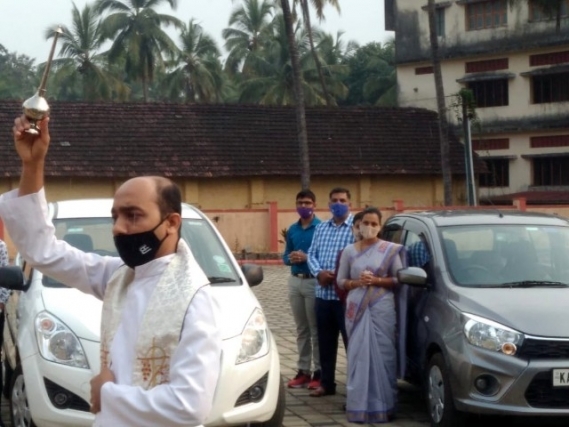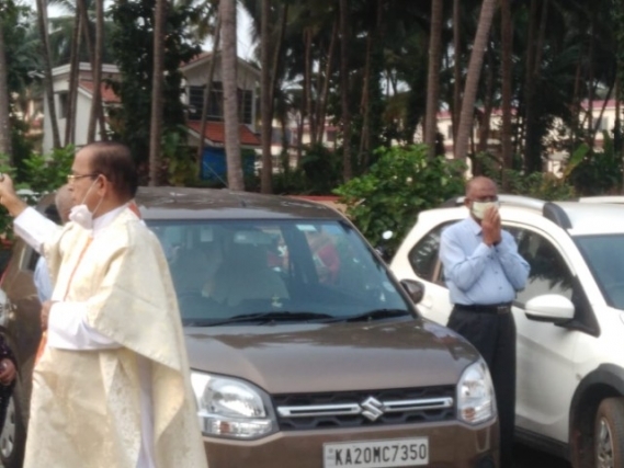 As soon as the Eucharistic mass was over, Very Rev Fr. Valerian Mendonca cited the prayers on vehicles and along with Fr. Canute Noronha Asst. Parish priest sprinkled of Holy water and blessed the vehicles parked in large numbers in the Cathedral campus.