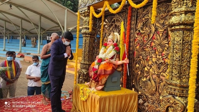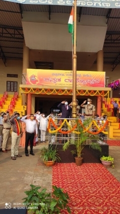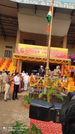 Udupi, Nov 1 : The District administration celebrated 65th Kannada Rajyotsava Day on Sunday, November 1, 2020 at the Mahatma Gandhi Stadium, Ajjarkad here.