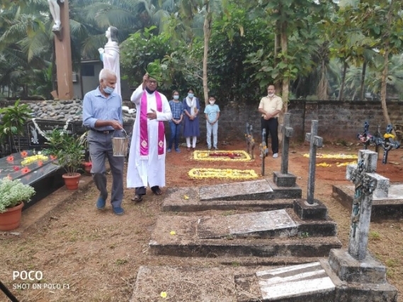 At the cemetery, Fr. Victor led the special prayers of the occasion along with Fr. Romel, blessed and sprinkled holy water on the cemetery graves.