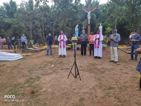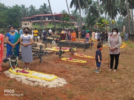 Kemmannu: On Monday, 2nd November, All saints day, Christian Kemmannites paid homage to their departed loved ones by offering mass and visiting the church cemetery. Special masses were celebrated by Fr. Victor D Souza, the parish priest along with Fr. Romel Saldanha of Jaipur Diocese. Large number of parishioners attended the 3 masses and prayed for their departed family members.