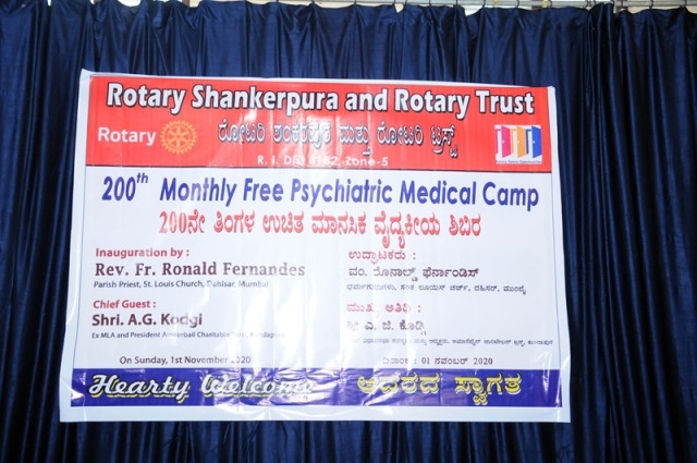 Udupi/Shankerpura: Nov 2, 2020: Rotary Club and Rotary Trust Shankerpura created a record by organising the 200th Monthly Free Psychiatric Medical Camp at Rotary Bhavan on Sunday, 1st November 2020.