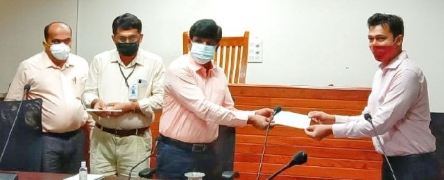 ಆಶಾದೀಪ ಯೋಜನೆಯ ಪ್ರಯೋಜನವನ್ನು ಕೋರಿ ಅರ್ಜಿಯನ್ನು ಸಲ್ಲಿಸಿದ ಏಕೋ ಕೆಮ್ ಲ್ಯಾಬೋರೇಟರೀಸ್ ಸಂಸ್ಥೆಯ ಮಾಲೀಕರಿಗೆ ರೂ 103035.00 ಗಳ ಚೆಕ್ ಅನ್ನು ಜಿಲ್ಲಾಧಿಕಾರಿ ವಿತರಿಸಿದರು.