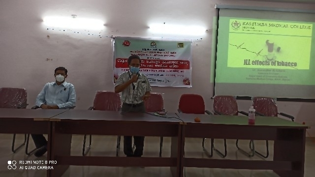 ಕೆ.ಎಮ್.ಸಿ ಯ ಡಾ.ಮುರಳೀಧರ್ ಕುಲಕರ್ಣಿ ಮಾತನಾಡಿ, ತಂಬಾಕು ನಿಯಂತ್ರಣ ಘಟಕವು ತಂಬಾಕು ನಿಯಂತ್ರಣ ಕುರಿತು ಕಾರ್ಯಕ್ರಮಗಳನ್ನು ಅನುಷ್ಟಾನಗೊಳಿಸುತ್ತಿದೆ. ತಂಬಾಕಿನಲ್ಲಿ ರಾಸಾಯನಿಕ ವಸ್ತುಗಳಿದ್ದು, ಇದನ್ನು ಸೇವಿಸುವುದರಿಂದ ಕ್ಯಾನ್ಸರ್, ಹೃದಯಸಂಬAಧಿ ಕಾಯಿಲೆ, ಶ್ವಾಸಕೋಶದ ಕಾಯಿಲೆ ಮುಂತಾದ ಮಾರಾಣಾಂತಿಕ ಕಾಯಿಲೆಗಳು ಹರಡುತ್ತವೆ. ವಿಶ್ವಾದ್ಯಾಂತ 60 ಲಕ್ಷಕ್ಕಿಂತ ಹೆಚ್ಚು ಜನರು ತಂಬಾಕು ಸೇವನೆಯಿಂದ ಉಂಟಾಗುವ ಕಾಯಿಲೆಯಿಂದ ಸಾವನ್ನಪುತ್ತಿದ್ದು, ಈ ನಿಟ್ಟಿನಲ್ಲಿ ತಂಬಾಕು ನಿಷೇದದ ಕುರಿತು ಸಾರ್ವಜನಿಕರಿಗೆ ತಂಬಾಕು ಸೇವನೆ ದುಷ್ಪರಿಣಾಮಗಳ ಬಗ್ಗೆ ಹೆಚ್ಚಿನ ಅರಿವು ಮೂಡಿಸಬೇಕು ಎಂದರು