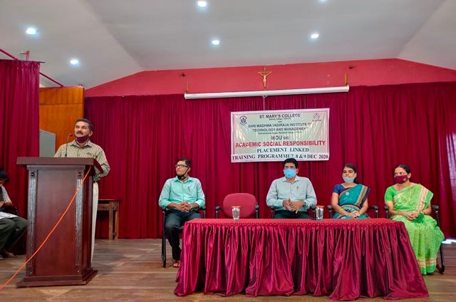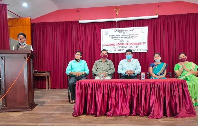 ಶಿರ್ವ: ಗ್ರಾಮೀಣ ಪ್ರದೇಶದಲ್ಲಿ ವಿದ್ಯಾರ್ಥಿಗಳು ಪದವಿ ಶಿಕ್ಷಣದನಂತರ ಉನ್ನತ ಉದ್ಯೋಗಕ್ಕಾಗಿ ಸ್ಪರ್ಧಾತ್ಮಕ ಪರೀಕ್ಷೆಗಳನ್ನು ಎದುರಿಸುವ ಕೌಶಲ್ಯಗಳನ್ನು ವಿದ್ಯಾರ್ಥಿದೆಸೆಯಿಂದಲೇ ರೂಢಿಸಿಕೊಳ್ಳುವುದು ಇಂದು ಅಗತ್ಯವಾಗಿದೆ. ವಿದ್ಯಾರ್ಥಿಯ ಮೊದಲ ಆದ್ಯತೆ ಲಭ್ಯವಿರುವ ವಿವಿಧ ಉದ್ಯೋಗಾವಕಾಶಗಳ ಬಗ್ಗೆ ಮಾಹಿತಿ ಪಡೆದು ಸ್ಪರ್ಧಾತ್ಮಕ ಪರೀಕ್ಷೆಗಳಿಗೆ ತಯಾರಿ ಮಾಡಬೇಕೆಂದು ಮುಖ್ಯಅಥಿತಿಯಾಗಿ ಆಗಮಿಸಿದ ಬಂಟಕಲ್ ಕಾಲೇಜಿನ ಪ್ರಾಂಶುಪಾಲ ಡಾ|ತಿರುಮಲೇಶ್ವರ ಭಟ್ರವರು ಮಾತನಾಡಿದರು. ಪದವಿ ವ್ಯಾಸಂಗ ಮಾಡುವ ಅಂತಿಮ ವರ್ಷದ ವಿದ್ಯಾರ್ಥಿಗಳಿಗೆ ಉತ್ತಮ ಶಿಕ್ಷಣದ ಜತೆಗೆ ಉಚಿತ ತರಬೇತಿಗಳನ್ನು ನೀಡಿ, ಸೂಕ್ತ ಉದ್ಯೋಗ ದೊರಕಿಸಿಕೊಡುವ ನಿಟ್ಟಿನಲ್ಲಿ ಶ್ರಿ ಮಧ್ವವಾದಿರಾಜ ಇನ್ಸ್ಟಿಟ್ಯೂಟ್ ಆಫ್ ಟೆಕ್ನಾಲಜಿ ಅಂಡ್ ಮ್ಯಾನೇಜ್ಮೆಂಟ್, ಬಂಟಕಲ್ ಹಾಗೂ ಶಿರ್ವ ಸಂತ ಮೇರಿ ಕಾಲೇಜು ಪರಸ್ಪರ ಒಡಂಬಡಿಕೆಯ ಅನುಸಾರ ಡಿಸೆಂಬರ್ 7 ರಿಂದ 9 ರವರಗೆ ಕಾಲೇಜಿನ ಸಭಾಂಗಣಯಲ್ಲಿ ಉದ್ಯೋಗಾಧಾರಿತ-ತರಬೇತಿ ಕಾರ್ಯಾಕ್ರಮವನ್ನು ಏರ್ಪಡಿಸಲಾಯಿತು.
