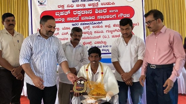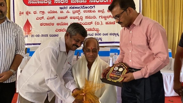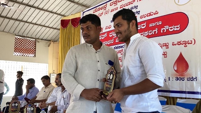 The Blood was donated to the Blood Bank of the Dist Govt Hospital in Udupi. All donors were given a certificate of appreciation and a momento for donating blood. Over 75 units of blood have been collected at the event today