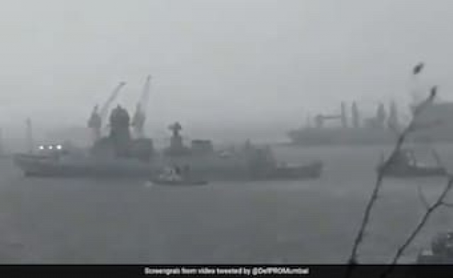 The Navy had deployed three of its frontline warships after receiving messages to rescue 410 people on board two barges off the Mumbai coast on Monday.