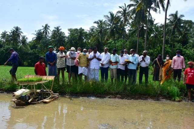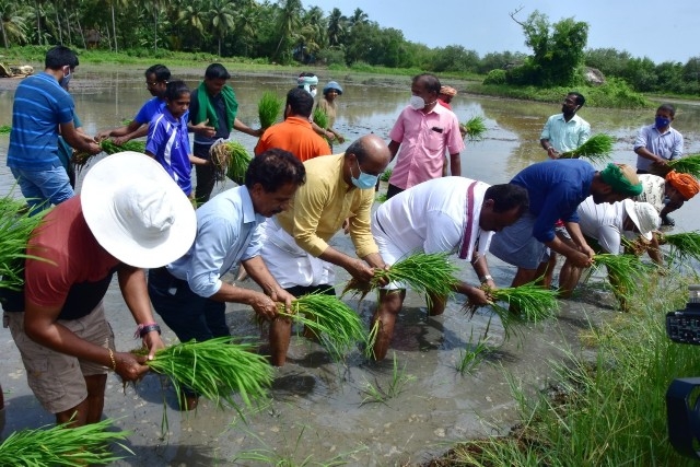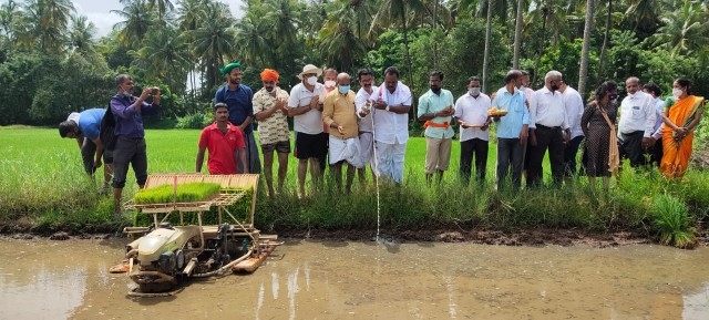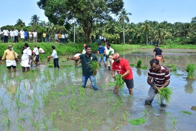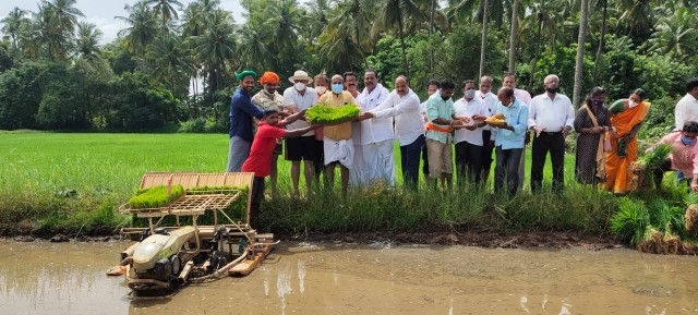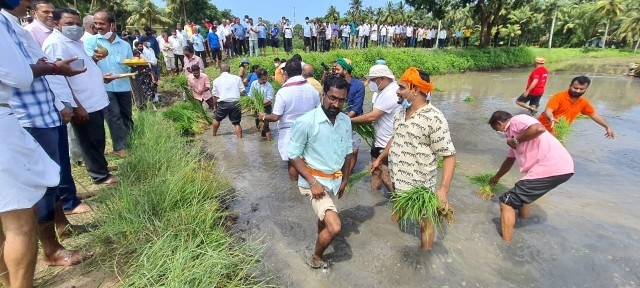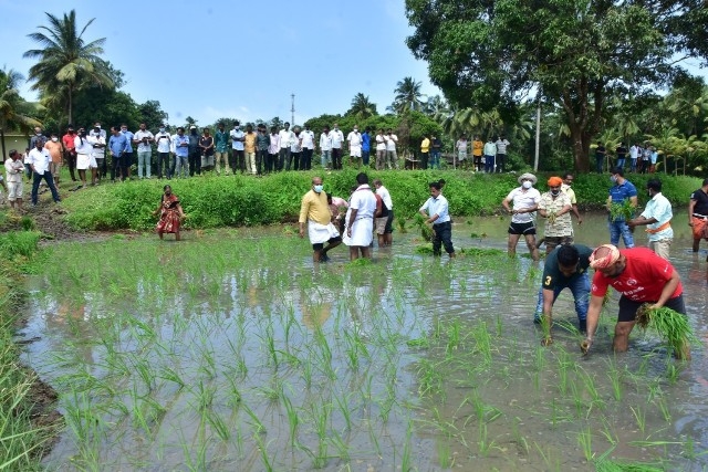 ಶ್ರೀ ಸಂತೋಷ್ ಶೆಟ್ಟಿ ಅಧ್ಯಕ್ಷರು ಬಂಟರ ಸಂಘ, ಪುಣೆ, ಶ್ರೀ ಪ್ರಕಾಶ್ ಚಂದ್ರ ಶೆಟ್ಟಿ ಅಧ್ಯಕ್ಷರು, ವ್ಯವಸ್ಥಾಪಕ ಟ್ರಸ್ಟಿ ಜಿ.ಎಂ ಎಜುಕೇಶನ್ ಟ್ರಸ್ಟ್, ಬ್ರಹ್ಮಾವರ, ಶ್ರೀ ರಾಜೇಶ್ ಶೆಟ್ಟಿ ಅಲೆವೂರು ಅಧ್ಯಕ್ಷರು ಉಡುಪಿ ಜಿಲ್ಲಾ ಕಾರ್ಯನಿರತ ಪತ್ರಕರ್ತರ ಸಂಘ, ಶ್ರೀ ಅಜಿತ್ ಆರಾಡಿ ಕೃಷಿಕರು ಮತ್ತು ವರದಿಗಾರರು ವಿಜಯ ಕರ್ನಾಟಕ ಉಡುಪಿ ಜಿಲ್ಲೆ ಇವರೊಂದಿಗೆ ಶಾಸಕ ಶ್ರೀ ಕೆ. ರಘುಪತಿ ಭಟ್ ಅವರು ಭೂ ಮಾತೆಗೆ ಹಾಲನ್ನು ಅರ್ಪಿಸಿ ನೇಜಿ ನೀಡುವ ಮೂಲಕ ಯಂತ್ರ ನಾಟಿ ಕಾರ್ಯಕ್ಕೆ ಚಾಲನೆ ನೀಡಿ ಸ್ಥಳೀಯರೊಂದಿಗೆ ಸೇರಿ ನೇಜಿ ನೆಟ್ಟರು.