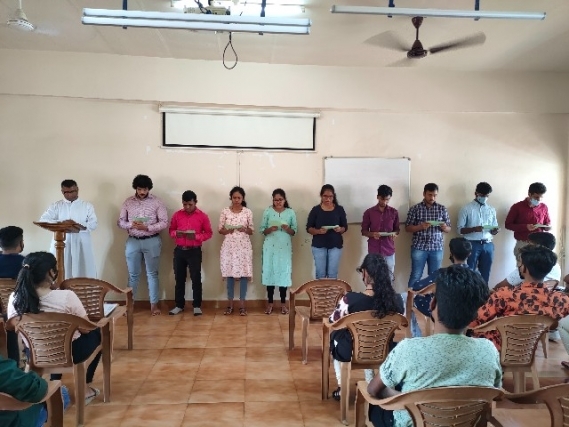 Ver Rev Fr Charles Menezes, Director of ICYM Udupi Diocese announced the new office-bearers for the year 2021-22. He also administered the oath taking ceremony and wished the office bearers a fruitful year of service and leadership. Prior to this the Director conducted a short session to the Presidents and secretaries of all the units and motivated them to reach to the peripheries in the words of Pope Francis.