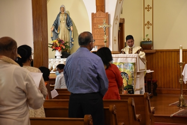 The feast of the Nativity of Our Lady was celebrated on Sept.11, 2021, by members of the Mangalorean Catholic Association of Washington, D.C., Maryland, and Virginia. The annual celebration took place in person this year at the St. Mary Star of the Sea Catholic Church in Indian Head, MD, with a medium sized crowd. Last year, the event was celebrated in conjunction with MCA East Coast USA and held virtually due to the COVID-19 pandemic.