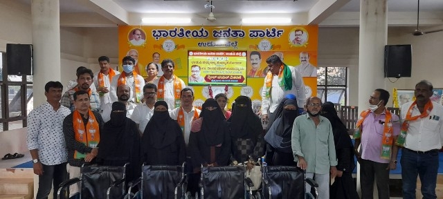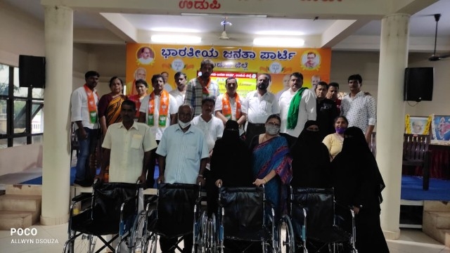 ಜನಪ್ರಿಯ ಶಾಸಕರಾದ ರಘುಪತಿ ಭಟ್ ರವರ ಸೂಚನೆಯ ಮೇರೆಗೆ, ಸೇವೆ ಮತ್ತು ಸಮರ್ಪಣೆಯ ಅಭಿಯಾನದ ಅಂಗವಾಗಿ 25.09.2021 ಶನಿವಾರ ಮಧ್ಯಾಹ್ನ 4:00 ಗಂಟೆಗೆ ಉಡುಪಿ ಜಿಲ್ಲಾ ಬಿಜೆಪಿ ಕಛೇರಿಯಲ್ಲಿ ಬಡ ಗುರುತಿಸಿದ 6 ಜನ ನಡೆಯಲು ಅಶಕ್ತರಾದ ದಿವ್ಯಾಂಗರಿಗೆ ಗಾಲಿ ಕುರ್ಚಿಗಳನ್ನು (ವೀಲ್ ಚೈರ್ ಗಳನ್ನು), ಮತ್ತು Air Bed - ಗಾಳಿಹಾಸಿಗೆಯನ್ನು ಉಡುಪಿ ಜಿಲ್ಲಾ ಬಿಜೆಪಿ ಅಧ್ಯಕ್ಷರಾದ ಸುರೇಶ್ ನಾಯಕ್ ಕುಯಿಲಾಡಿಯವರು ಮತ್ತು ಅ.ಸಂ.ಮೋರ್ಚಾದ ಅಧ್ಯಕ್ಷ ದಾವುದ್ ಅಬೂಬಕರ್ ಹಾಗೂ ಮೋರ್ಚಾದ ಪದಾಧಿಕಾರಿಗಳು ವಿತರಿಸಿದರು.