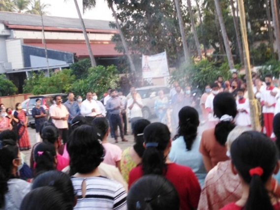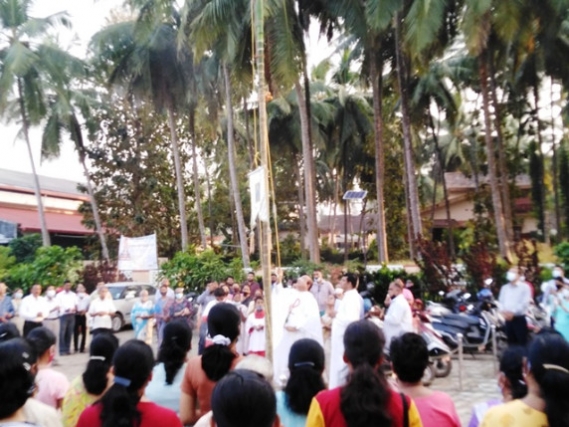 Udupi, January 08, 2022 : Prelude to Annual Feast of Our Lady of Miracles, "Madi Fest" was celebrated at the Milagres Cathedral on Friday, 7 January, 2022, which declared open the Annual Feast – 2022 by hoisting the Milagres Flag. Due to week end lock down restrictions the ceremony was held last evening after the mass.