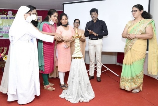 The course inauguration of the 19th Batch of GNM, 18th Batch of B.Sc.(N), 12th batch of P.B.B.Sc.(N), 13th Batch  of M.Sc.(N), 5th  Batch of B.Sc. Renal Dialysis Technology, 2nd Batch of B.Sc Imaging Technology, 2nd Batch of B.Sc Medical laboratory Technology, 2nd  Batch of B.Sc Anaesthesia and Operation Theatre Technology & 1st batch of  B.Sc. Emergency & Trauma Care Technology Coursewas held on 12th January 2022 at 10am  in the Athena College Auditorium.