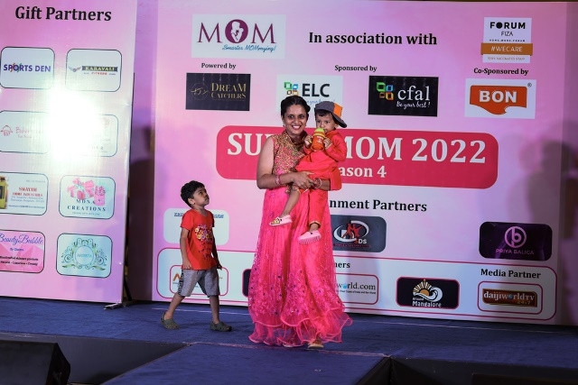 Moms of Mangalore (MOM), an online social group of close to 40k mothers of the coastal belt organised their annual flagship event, “SUPERMOM 2022” contest , season 4 is association with Forum Fiza Mall on May 8th, 2022.MOM, along with all the well-wishing sponsors, came together to host a colorful evening to commemorate the special person in everyone’s life. The event was sponsored by ELC, CFAL, co sponsored by Bon MAsala and powered by Dream Catchers Events.