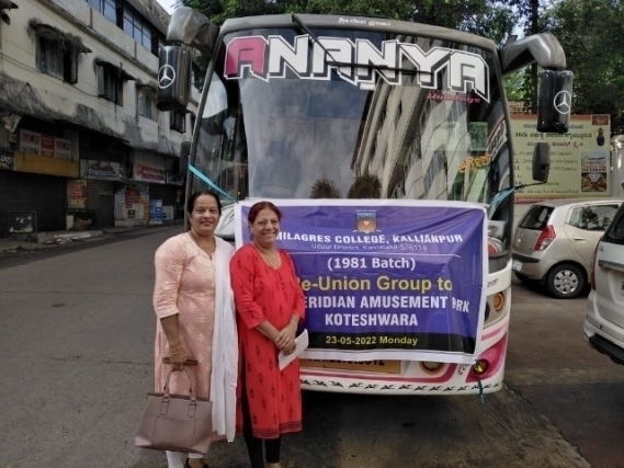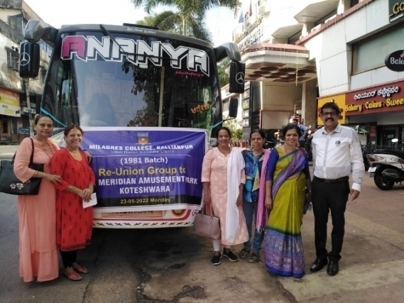 The get together of 21 Alumni of the B. A. batch 1981 that came together four decades after they left the college campus. Alumni of B. A. batch 1981 now they are working in various professions had not met after them graduating from the Milagres College, Kallianpur. The idea to reunite came after Collin D’Souza who met two days prior to Covid lockdown, to Arundathi at Homeopathic shop at Udupi. While Collin heard the voice of Arundathi which she was heard before and she recognized her. So, she asked her that you are Arundathi. She said yes. It was the moment of joy with each other. Yes, it was the moment and starting point of idea of reunion with other classmates of their batch.