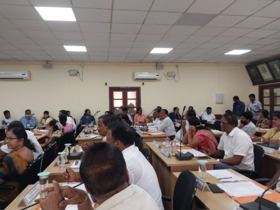 The meeting was presided over by CMC President Sumithra Nayak. The municipal councilor Vijay Kodavoor asked the officials about the present status of STP plant and the UGD system in Municipal area limit. He said that since three months the bleaching powder was not being put in the STP plant to purify the water. He accused the environment officer about the reason for the delay. In reply to the question and allegation, Sumithra Nayak said that the STP plant problem will be sorted out immediately. The approval at government level has been given for UGD and STP work at a cost of 338 crore. Once grants are released the STP and UGD system will be improved. Due to technical reasons, the plant problem was delayed. Vijay Kodavoor also appealed the officials and the chair to remove the trees that had fallen in the Indrani river.