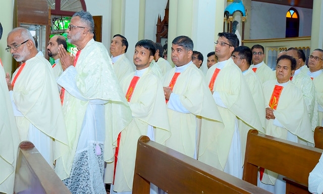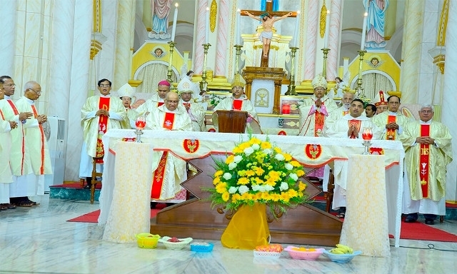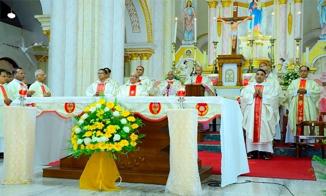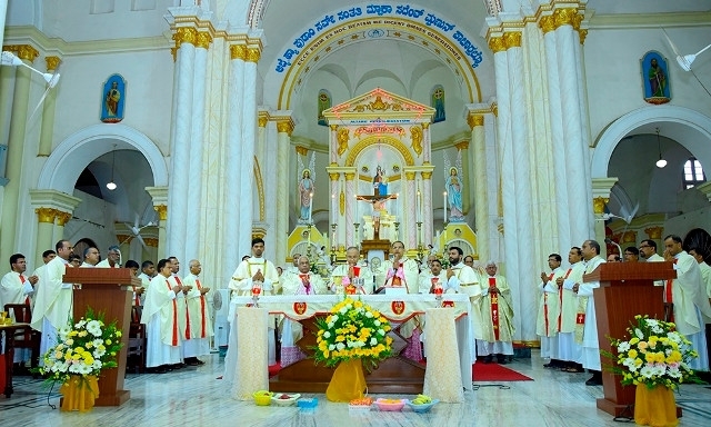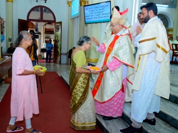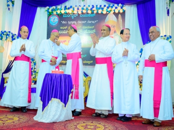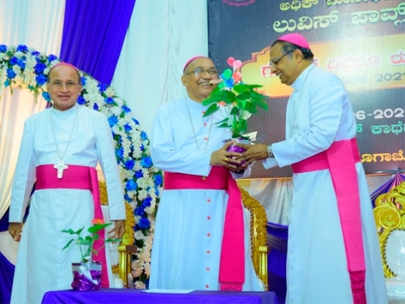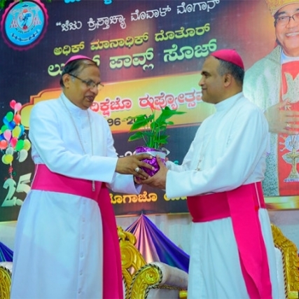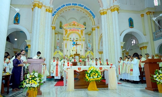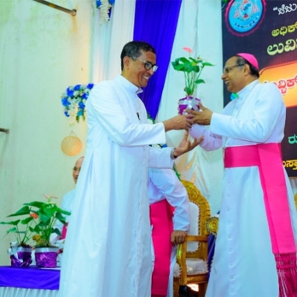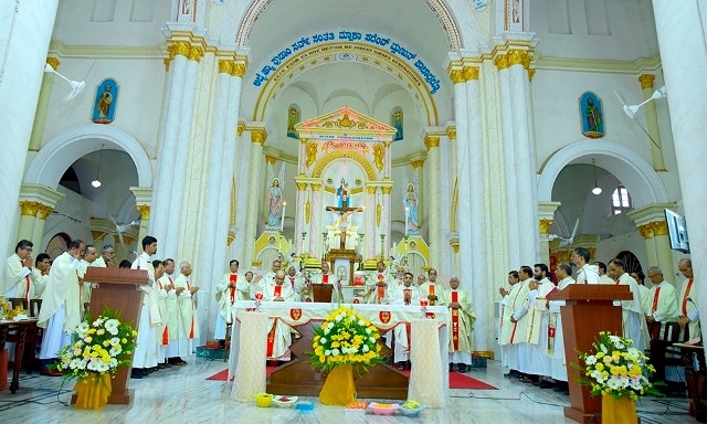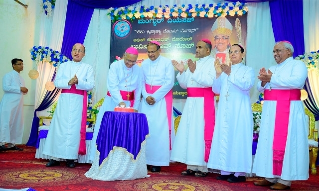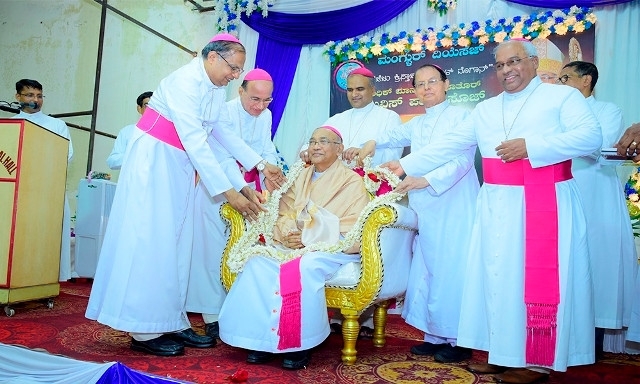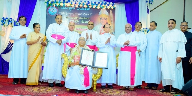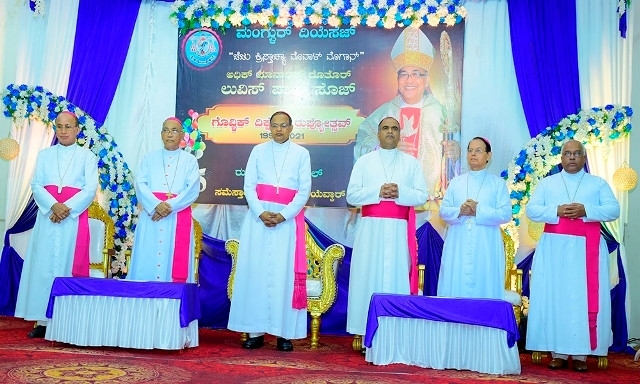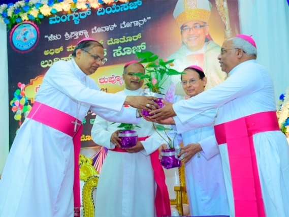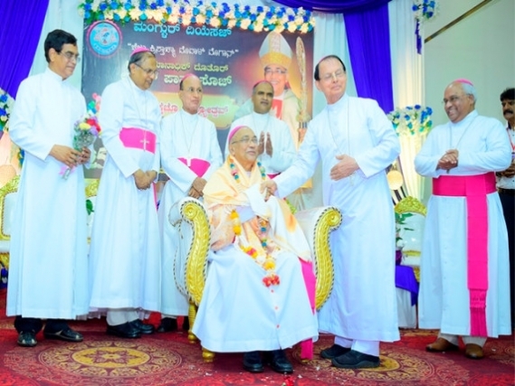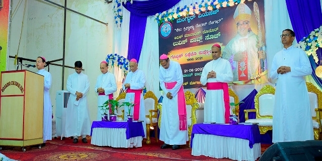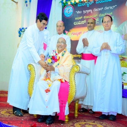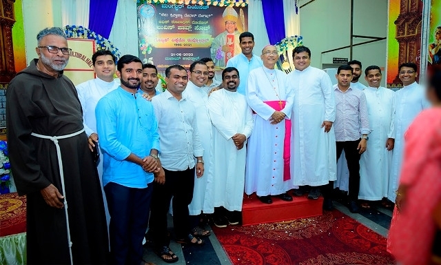 Most Rev. Dr Peter Paul Saldanha, Bishop of Mangalore, Most Rev. Dr Gerald Isaac Lobo, Bishop of Udupi, Most Rev. Dr Francis Serrao, Bishop of Shimoga, Most Rev. Dr Henry D’Souza, Bishop of Bellary and Most Rev. Dr Ignatius D’ Souza, Bishop of Bareilly concelebrated the mass. Many priests of the diocese and those serving in the diocese were also present.