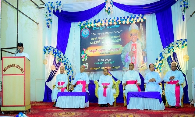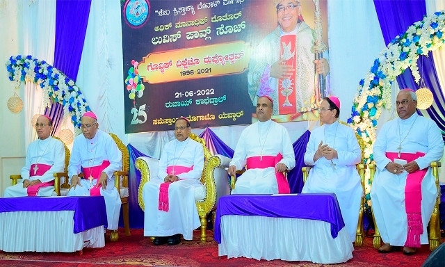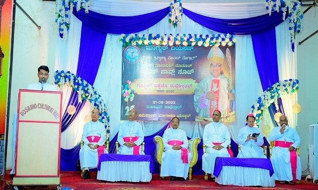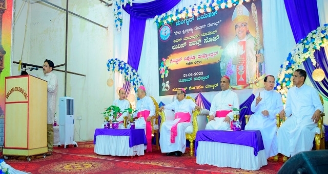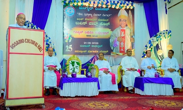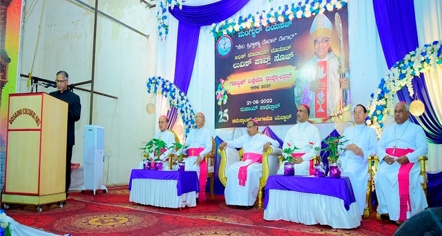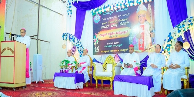 MANGALURU, JUNE 21: Most Rev. Dr Aloysius Paul D’ Souza, Bishop Emeritus of Mangalore diocese celebrated the Silver Jubilee of his Episcopal Ordination with a solemn thanksgiving mass in Our Lady of Rosary Cathedral, Mangalore on his Birthday and his patron Saint St Aloysius Gonzaga Day, Tuesday, June 21, 2022 at 9.30 am.