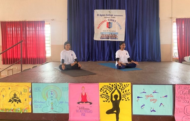 Yoga is the music dance of every cell with the music of every breath that creates inner serenity and harmony. On 21st June 2022, along with the rest of the world, International Yoga Day was observed at St Agnes PU College. The participants comprised of NCC Cadets (Army & Airwing) of St Agnes PU College and St Agnes College (Autonomous). The chief guest for the event Sr Norine DSouza AC, Principal, St Agnes PU College whospoke on the importance of yoga to maintain a healthy body and mind.