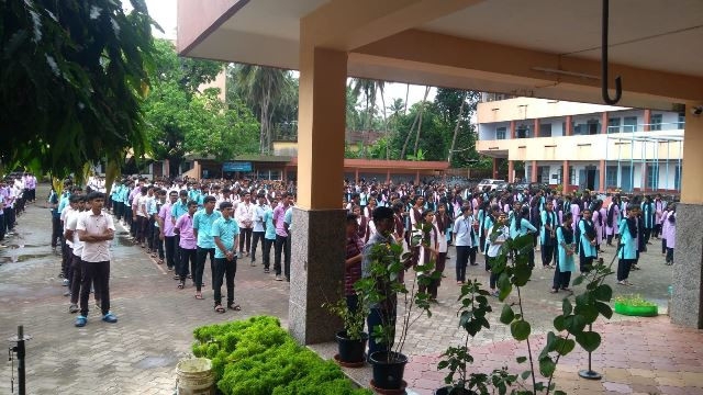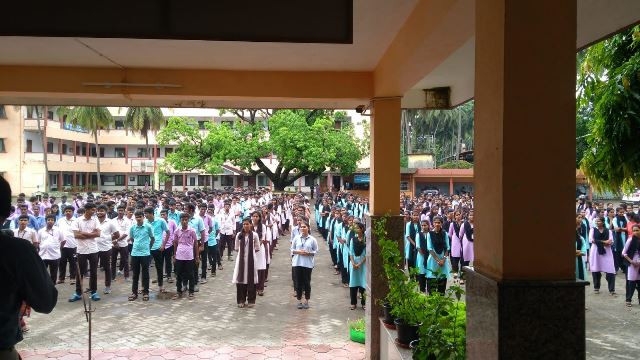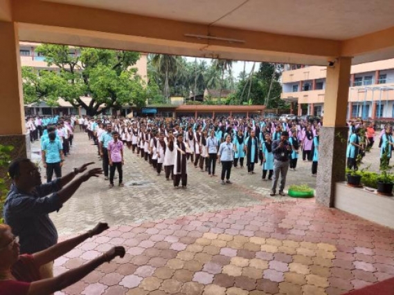 As the world at large woke up to celebrate ‘International Yoga Day, on 21st June, 2022, at 9.30 AM the spacious College quadrangle was filled with hundreds of students assembled to perform few asanas of yoga. It was a feast to the eyes both to watch and with them. Well disciplined youth, in rows, different classes wearing varied colour uniforms, actively involved and participated in the basic yoga taught and performed by well-known Yoga Guru Mr Manjunath Patkhar, Sunaith International Foundation, a Trust popularising Yoga practice for good health and wellness, at various levels both in India and abroad…………