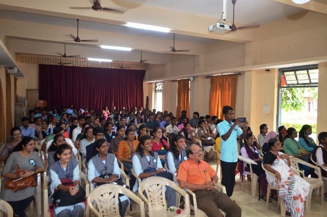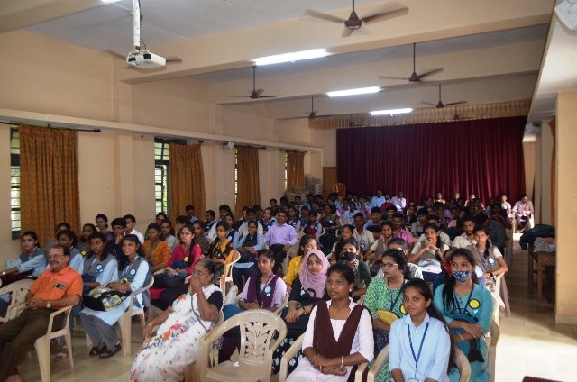 True to the expectations of the young students, Mr Derrick Mascarenhas spoke in length about various subjects, well received by the delegates. ‘Days of learning to score well and secure life are gone….Time is more than ripe to convert knowledge into a skill…..’ he gave various examples of how Science, statistics, Commerce, Environment science etc are inter- related. The knowledge world is taking swift shifts as till recent years it was ‘e’ which was the prefix for all modern technologies….like, e-commerce, e-Banking, e-insurance….as digitalization was incorporated…..today it’s the term ‘Green’ is highlighted in every branch of learning, signifying the role of environment in a Global village, he explained. ‘All knowledge streams are complementary to each other’ and insisted students to be critical in thinking, clarifying doubts and develop a culture of questioning. ‘Higher education now beyond conventional studies… but inter-disciplinary, as we visibly trace Scientific temper in every walks of life….as he concluded the insightful key note address the delegates present gave a thunderous round of applause….!