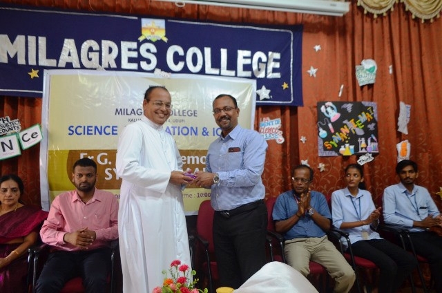 The Chief Guest of the colourful event as well as the famed resource person in Mr Derrick Mascarenhas was introduced to the gathering by Rev Dr Anil Prakash Castelino, HOD Dept of Chemistry & the Coordinator of this ‘Annual Inter-Collegiate Science Fest’. “Mr Mascarenhas hailing from Kollalgiri, presently Vice Principal & HOD – Dr TMA Pai Polytechnic Manipal, is a proud alumna of Milagres Junior College in 2011, who passed out his PUC in Science stream in flying colours. Then on no looking back, but climbing the ladder of success as a teacher, youngest resource person and a trainer…..” ‘No doubt in company with such a young and energetic person this day undoubtedly relaxing, joyful and fruitful…..’ Fr Castelino concluded and once again wished on behalf of the all Staff & Students - Science Department, the whole day event to be both memorable and joyful to all gathered……..!