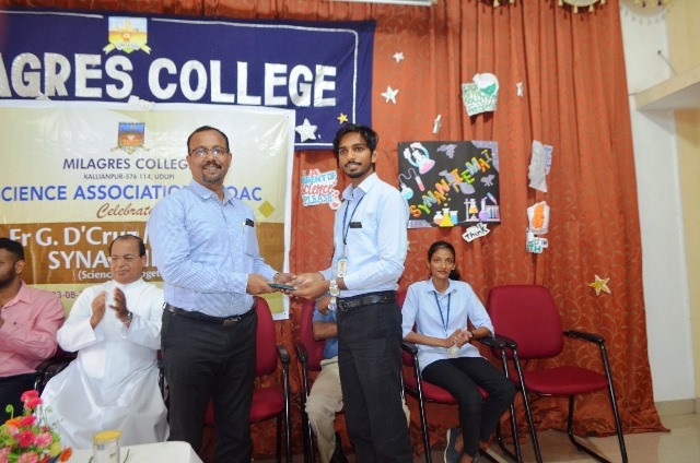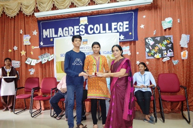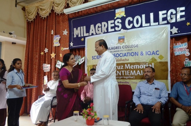 Principal Dr Vincent Alva admitted though Science and Maths not his cup of tea but appreciated the initiatives of Science faculty and students for arranging such a fruitful event of one full day in Milagres Campus. He took the occasion to wish all activities and competitions all success. He concluded with few lines of a meaningful poem, ‘No Difference, when we turn off light and close our eyes’ and wished all delegates a pleasant day in the Milagres…..