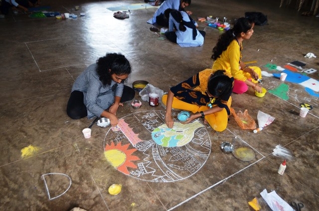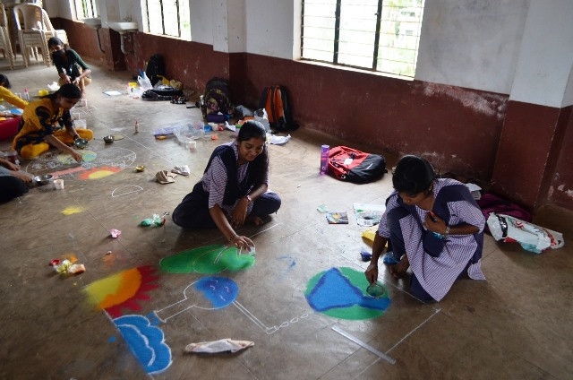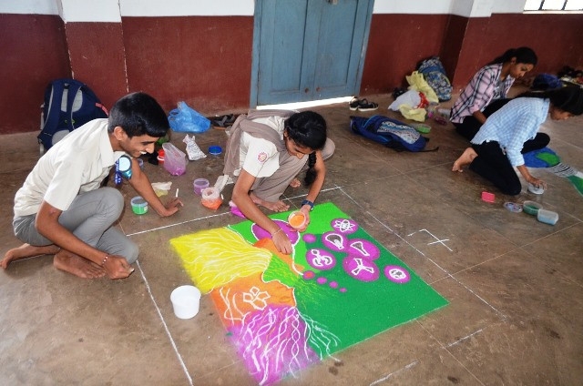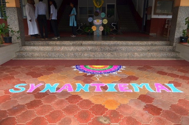 All the participants were served with Breakfast, lunch and snacks and tea and the young student Volunteers contributed in a big way to arrange venues for competitions, Welcome arc, rangoli, decorations with balloons etc to give a real festive look to the Science block of the College and AV Auditorium.