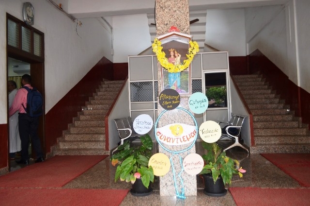 To begin the event Ms Harshita sought Almighty Lord’s blessings on the event with her prayer hymn – ‘Ninagagi Kadirisu Prabhuve’. Ms Monica Mendonca extended a cordial Welcome to all distinguished guests, on the dais and the delegates from the various Colleges. At 10.10 am the Guests, Priests, Principal, Dr Vincent Alva, Dean of Science section Dr Surekha Bhat, IQAC Co-ordinator Dr Jayaram Shettigar joined V. Rev Fr Valerian Mendonca to light the traditional lamp.