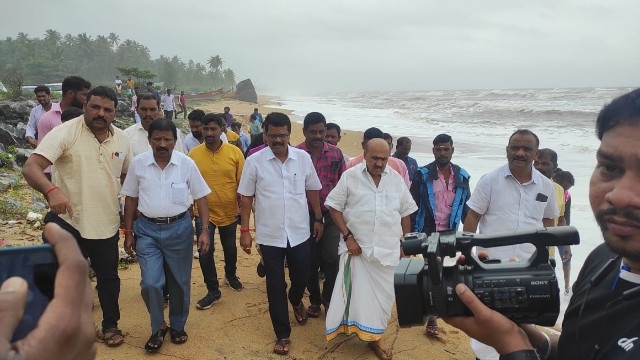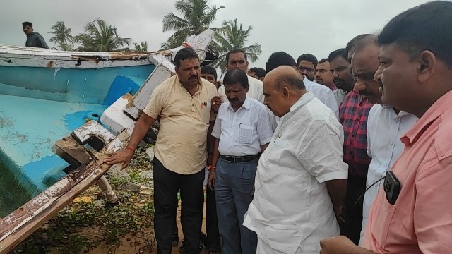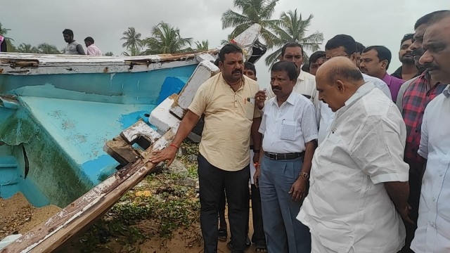 District in-charge minister S Angara visits at Kalihitlu, Shirroor and inspects the damaged fishing country boats