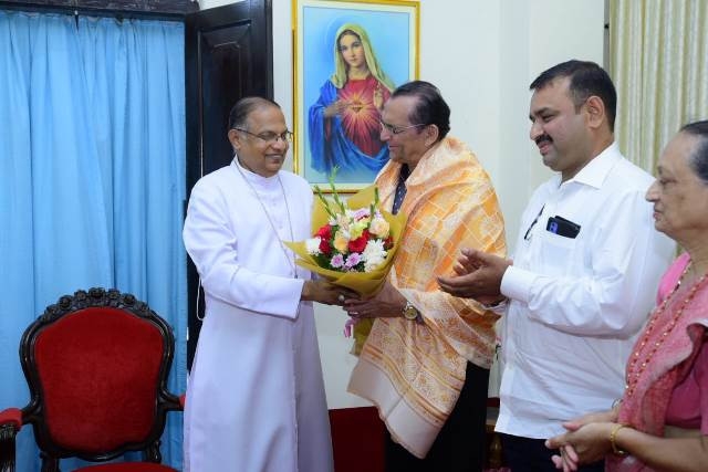 Bishop of Mangalore Diocese Rt. Rev. Dr. Peter Paul Saldanha felicitated Mr.Francisco Sardinha Ex-Chief Minister of Goa and Member of Parliament, South Goa Lok Sabha Constituency on behalf of Catholic Sabha Mangalore Pradesh ® here today at Bishop’s house on October 3rd