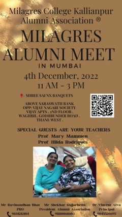 Milagres College Alumni Association is geared up to create a history by bringing the alumni residing in Maharashtra for an alumni meet in Thane, Mumbai. Already more than 100 alumni have been registered and some more are yet to join. The Alumni Meet will be held on Sunday, 4th December, 2022 at Shree Sai NX Banquets, Thane from 11 am to 3 pm under the leadership of Mr Jayaprakah Shetty, Jalaja Charitable Trust, Mumbai and Mr Satyajith Shetty, former Mangalore University Volleyball team Captain. Alumni President Mr Shekar Gujjarbettu will be presiding over the ceremony and retired teachers Prof Hilda Rodrigues and Prof Mary Mammen will grace the meet as chief guests. As many as 15 alumni members from the local body from Kallianpur are going to participate.