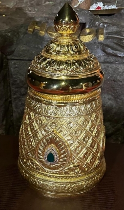 The Diamond Studded Golden Crown weighing about 2.25Kgs, valued over 2.0 Crores was handed over to Sri Puthige Sripadangalavaru Sri Sugunendra Theertha Swamiji by Kothari Jewellers today at Sri Govardhanadhari Sri Krishna Kshetra , Basavanagudi with presence of Secretary Sri Prasanna Acharya and Chief priest Sri Kiran Rao.
