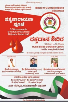 UAE Ganiga Samaj on a revival note and celebrating UAE’s 51st National Day, conducted a Blood Donation Campaign in Latifa Hospital, Blood Donation Centre in Jaddaf on 11th December, 2022 from 9 am to 12 pm successfully.